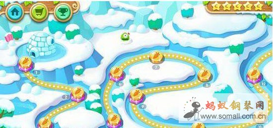 首先在界面中的右上角,玩家们可以看到生命星数量。这是2代中新加的生命星元素,也就是玩家在进入关卡的过程中,退掉游戏和重新开始,都需要消耗一颗生命星。玩家生命星恢复时间是2分钟一颗。