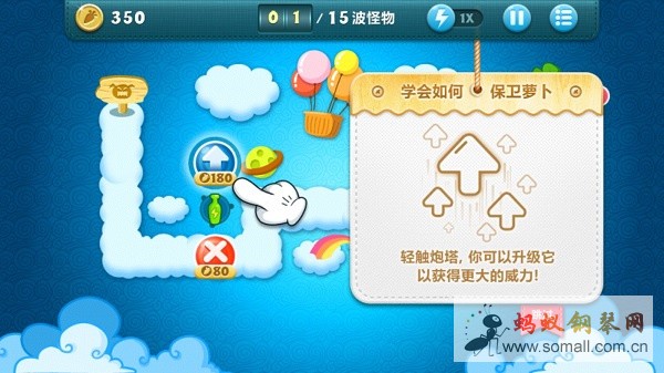 升级炮塔以及建造炮塔,玩家们可以前往游戏开启页面,点击右边的“?”查看帮助教程。