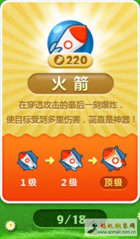高伤害单体输出炮塔,如描述所言,基本上就是用来对付巨怪的,以及帮忙清道具。升到顶级比一般炮塔价格高,在布局时要记得这一点,避免因为钱不够导致小怪漏过。