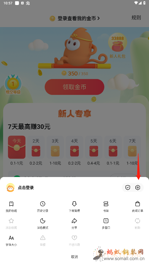 悟空浏览器赚金币的日常任务有签到,看广告视频,一天四个点吃饭赚钱,走路赚钱,答题挑战赚钱,看热搜,设置为默认浏览器等等。