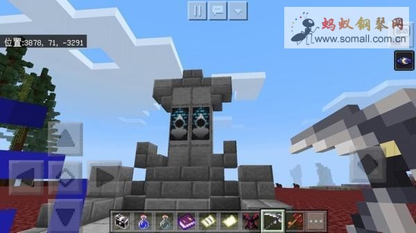 找到这个墓碑建筑之后,在其下方块中间挖个洞,跳下去将遇到一个紫色的传送门;