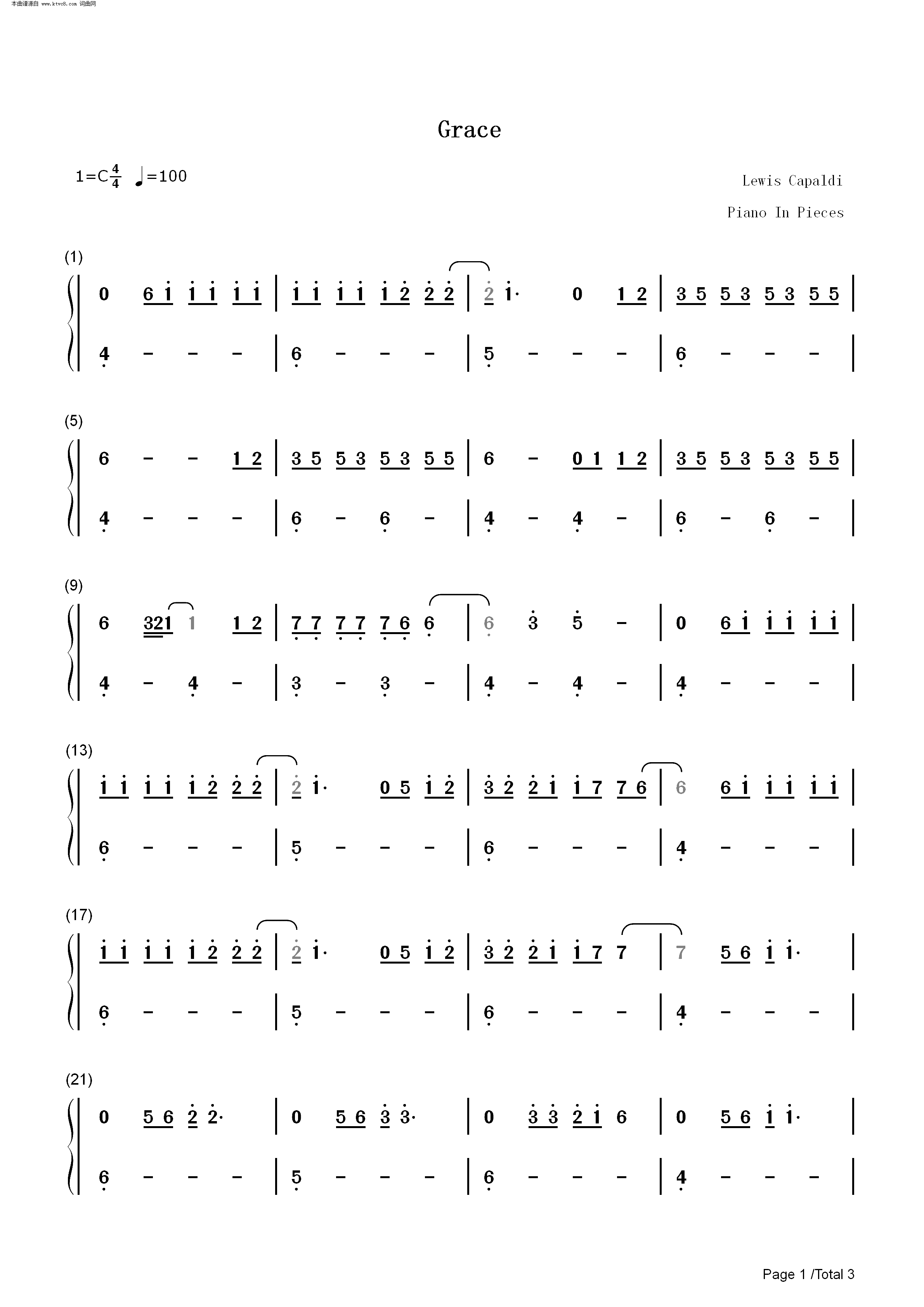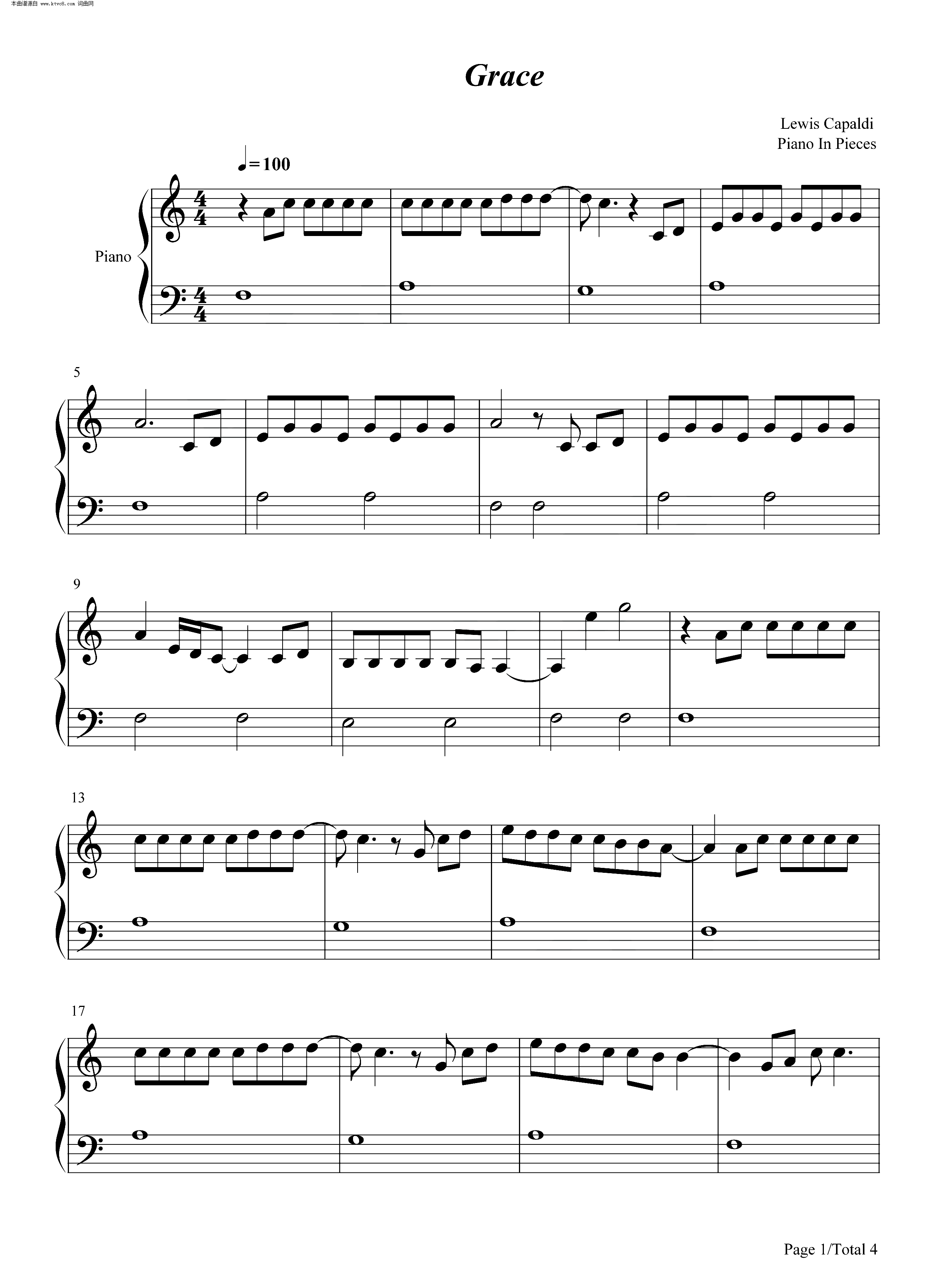 .Grace Lewis Capaldi 钢琴谱 简谱