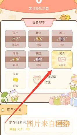 奶酪单词盲盒券怎么获得,首先进入app我的页面,点击页面右侧的任务选项进入,进入后点击箭头所指的图标,等待进入新页面,我们可以看到已经获得盲盒券了。
